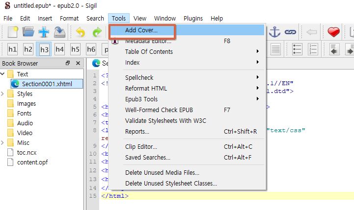 1. Sigil에서 이미지 불러오기 (메뉴 차이)