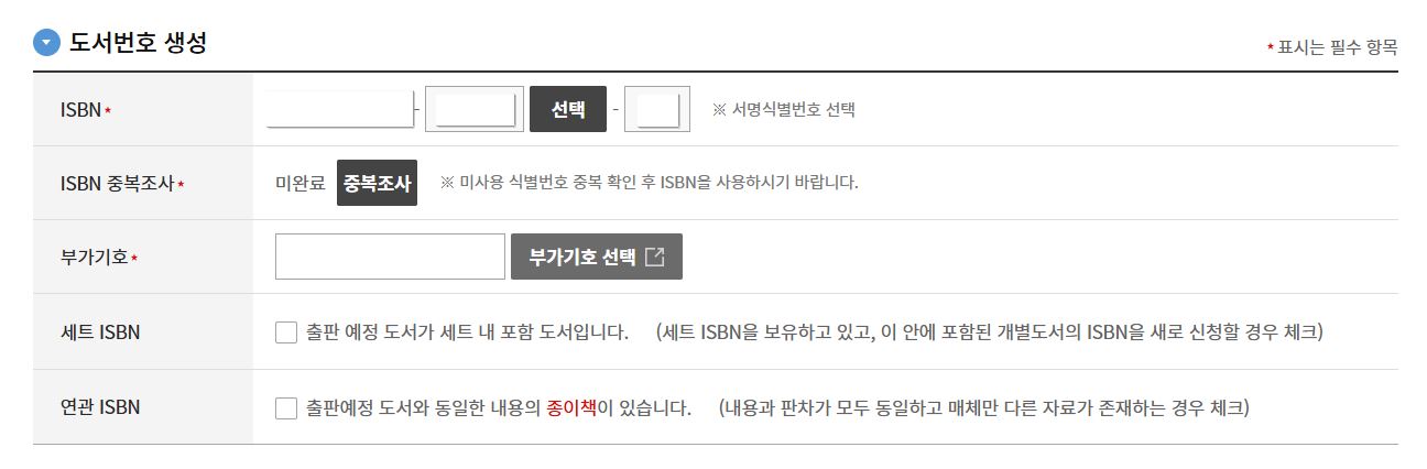 - 이미 출판사 등록이 되어 있다면 직접 ISBN 발급 가능