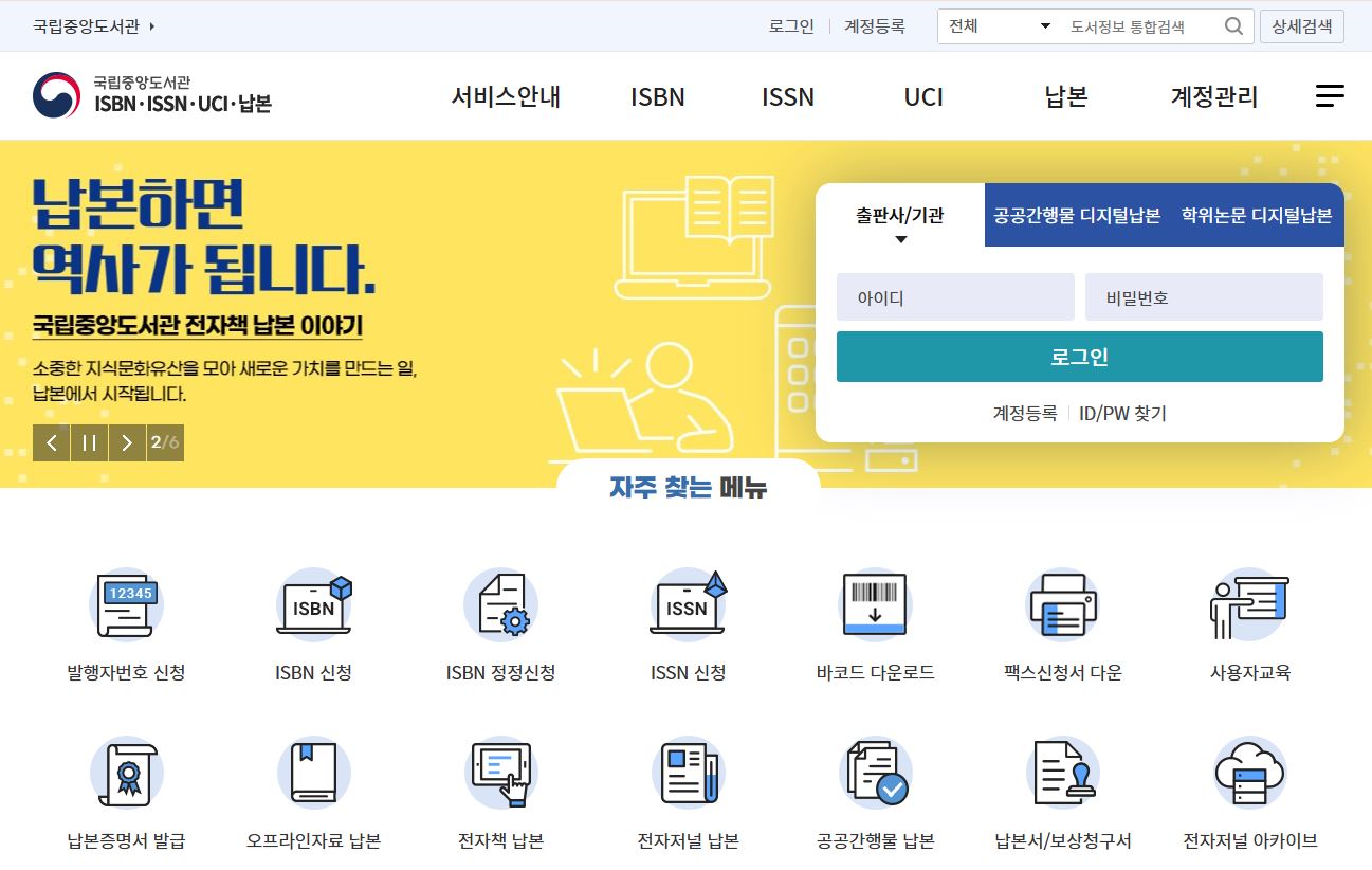 2) 국립중앙도서관 ISBN 발급 시스템 접속